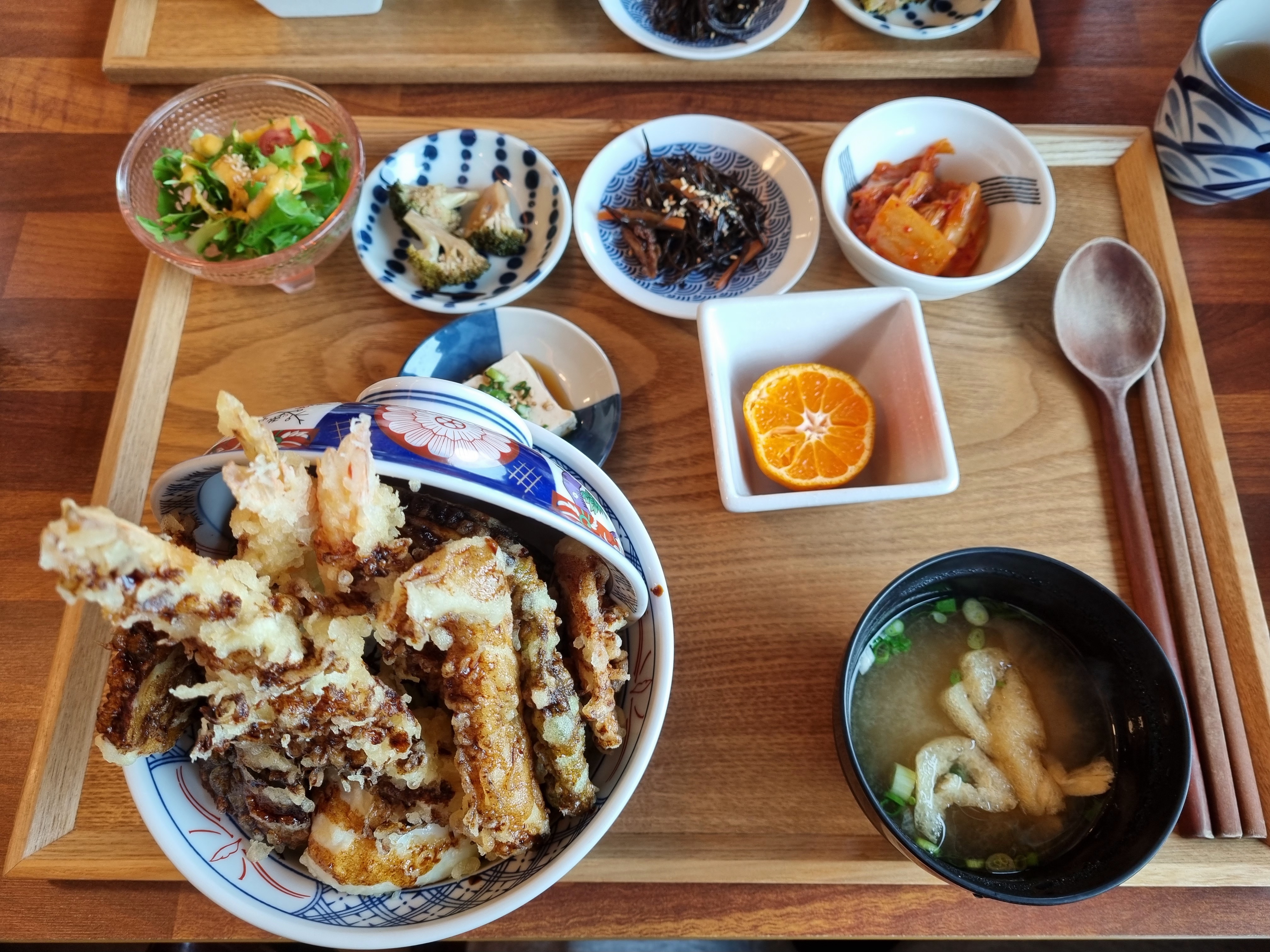 텐동정식은 좋았다. 소스도 알맞았고, 밥에 놓인 반숙계란도 절묘했다(비벼먹기용). 튀김정도도 좋아서 겉바속촉. 근데 반찬 중에 김치는 좀 별로였다는게 단점이다(일본에서 먹는 김치처럼 좀 단 느낌). 차라리 김치는 빼는 게 나을 것 같다.