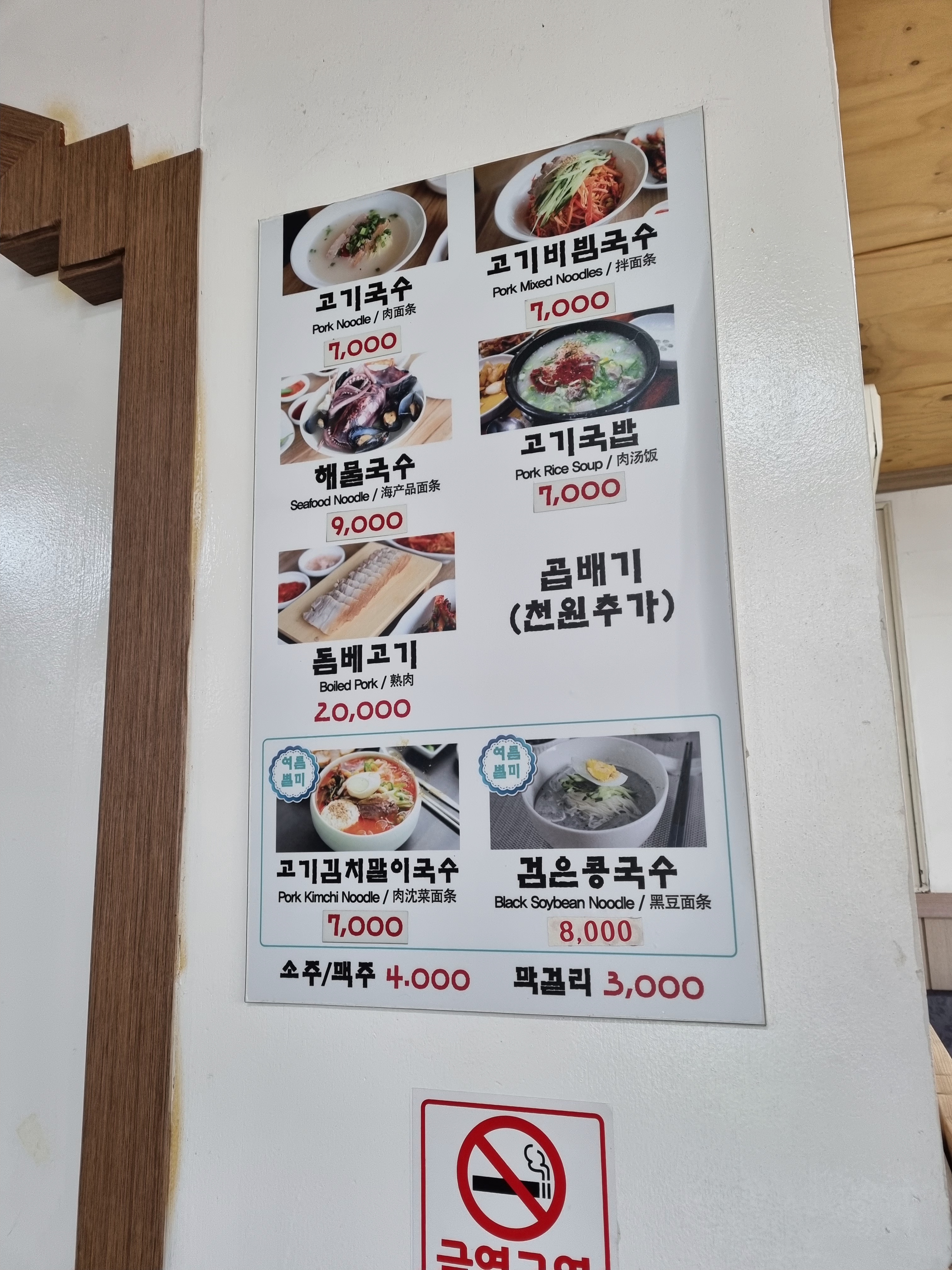 제주에는 웬만한 맛집은 아침 10시에서 11시 이후에 오픈하는 집이 많은 것 같다. 그래서 아침 일찍 일정을 시작하면 아침식사 고르기가 좀 어려워지는데 이럴 때 가면 좋다. 솔동산고기국수는 아침 9시부터 영업한다.