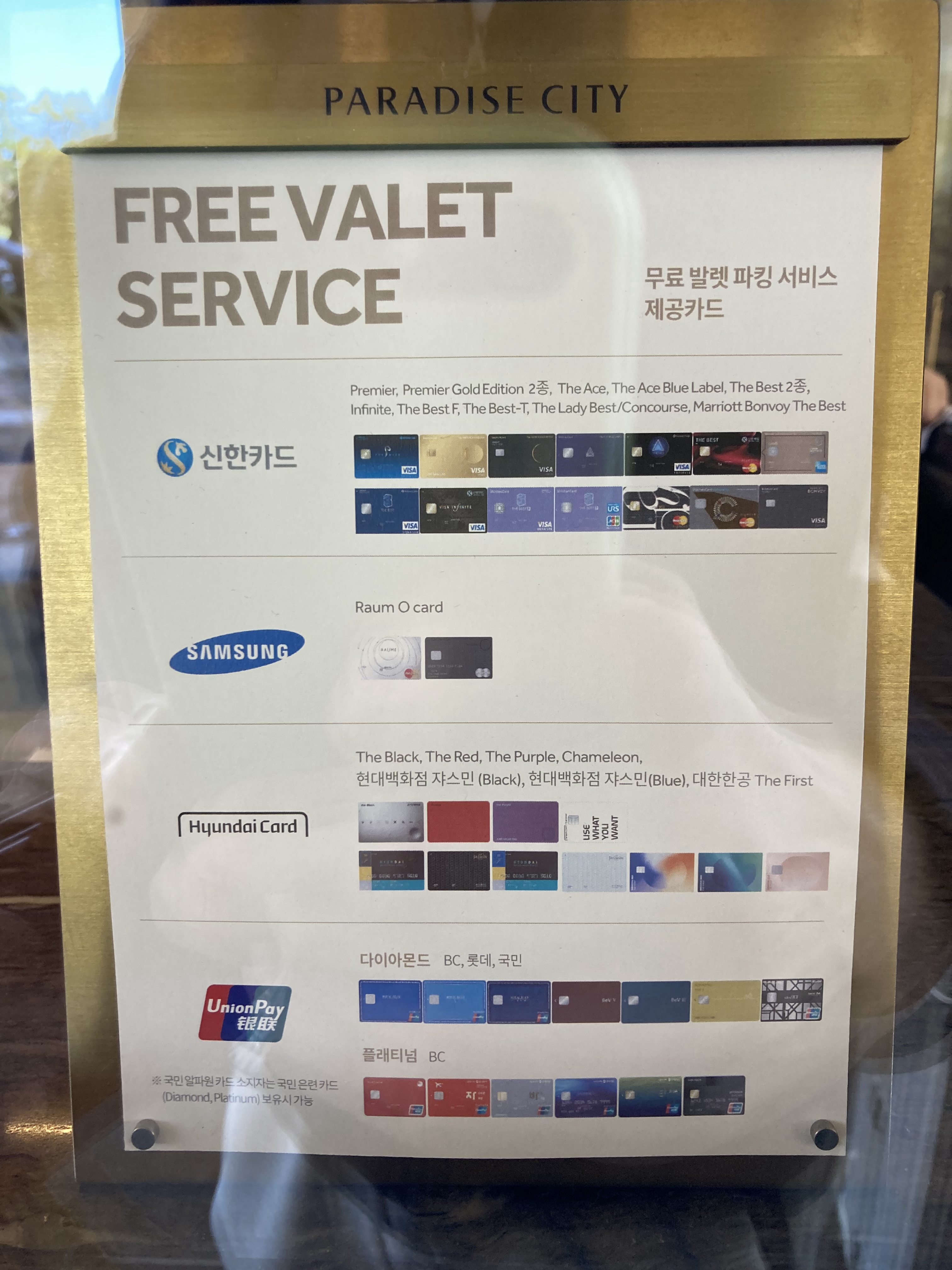 파라다이스시티 호텔 발렛파킹 제휴카드다.