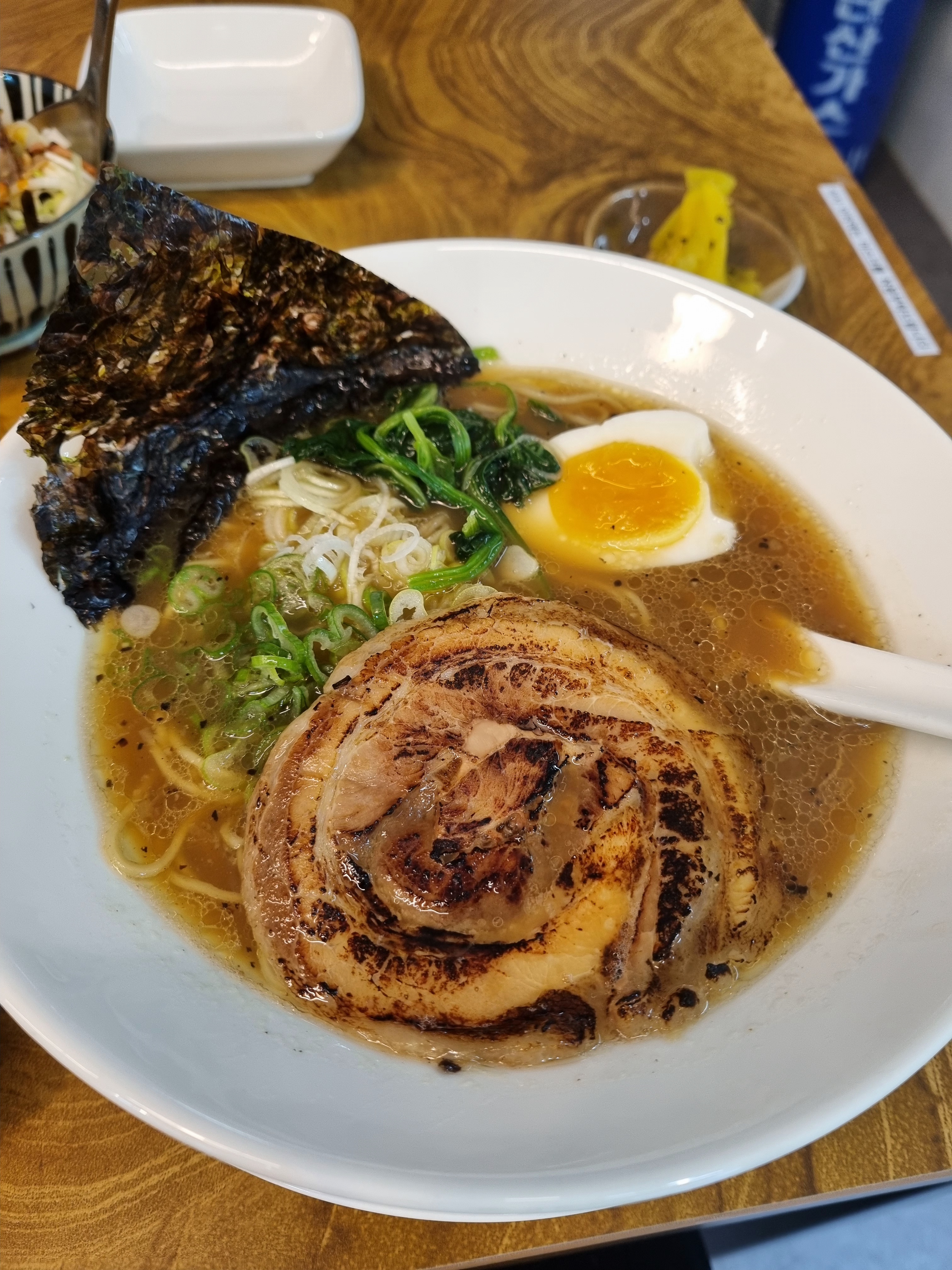 차슈와 계란은 굿. 국물은 음.... 시금치가 들어가서 싫어할 사람 있겠다.