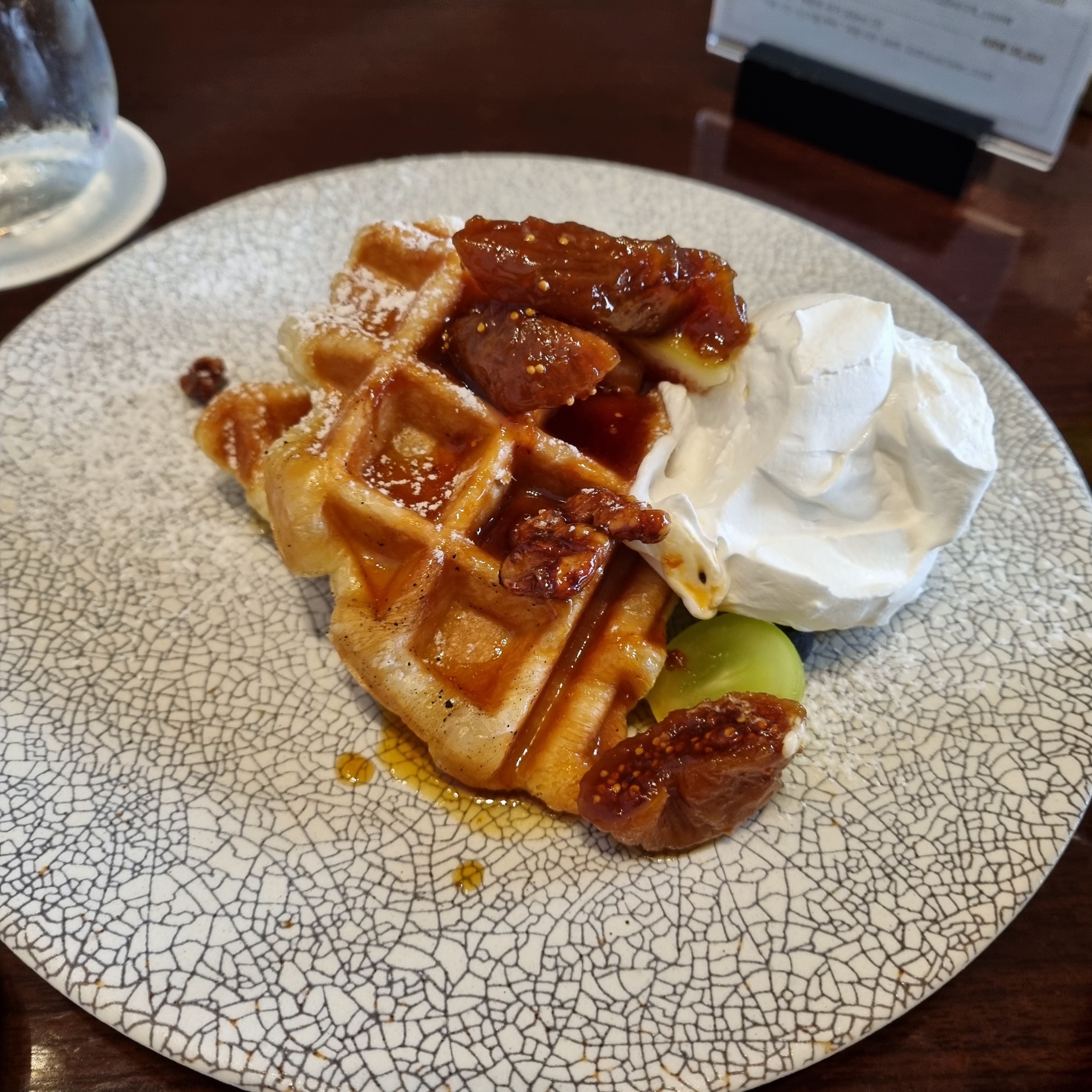애프터눈티세트에 포함된 크로플. 따뜻하게 나와서 이걸 먼저 먹어야 한다. 역시 무화과가 들어가 있다.▼