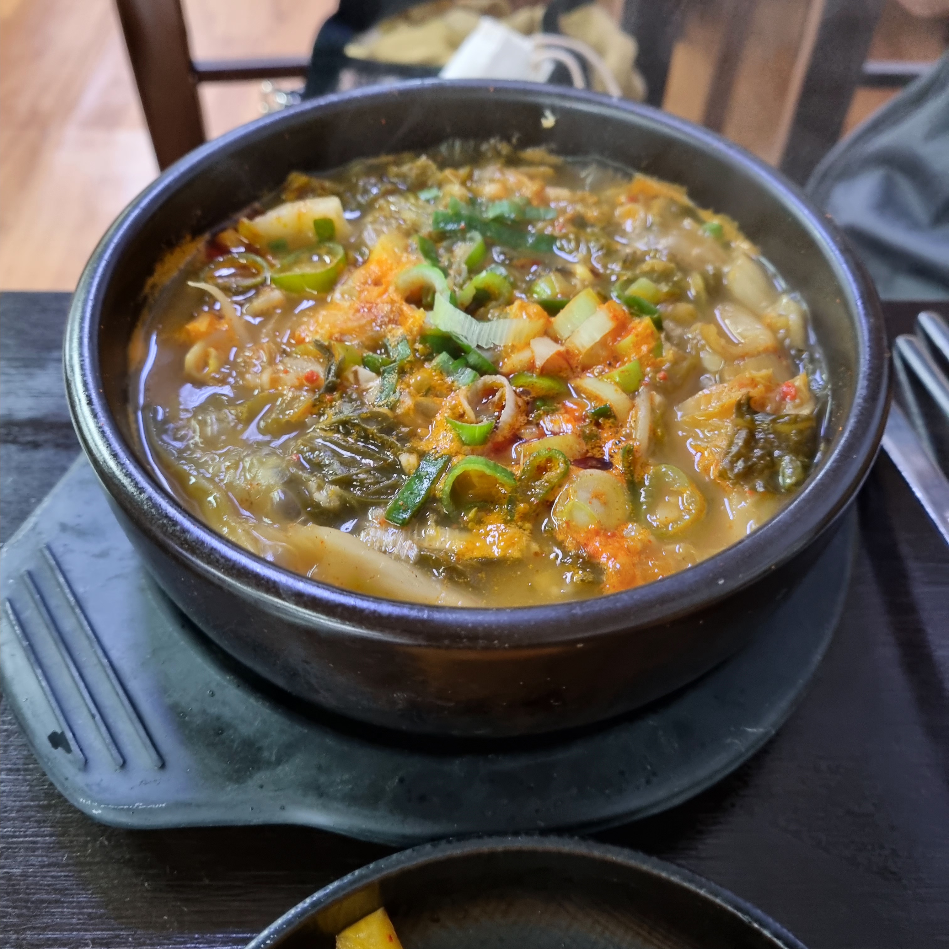 이거는 선지도 양도 안 들어있다. 야채랑 계란반숙 정도 들어있는 듯. 고기도 없는 거 같아. 나올 때부터 후추간이 상당히 되어있어서 맵다.