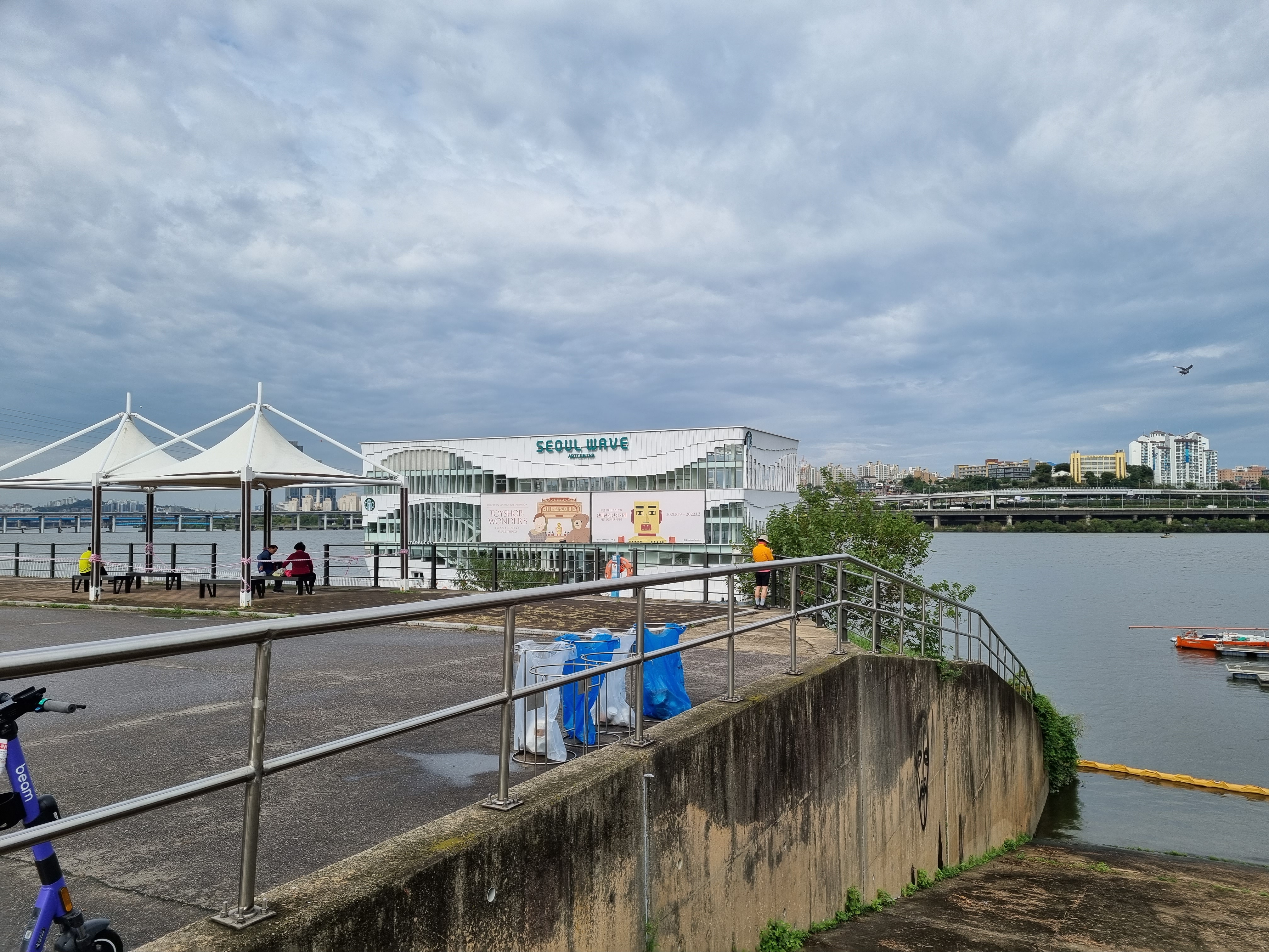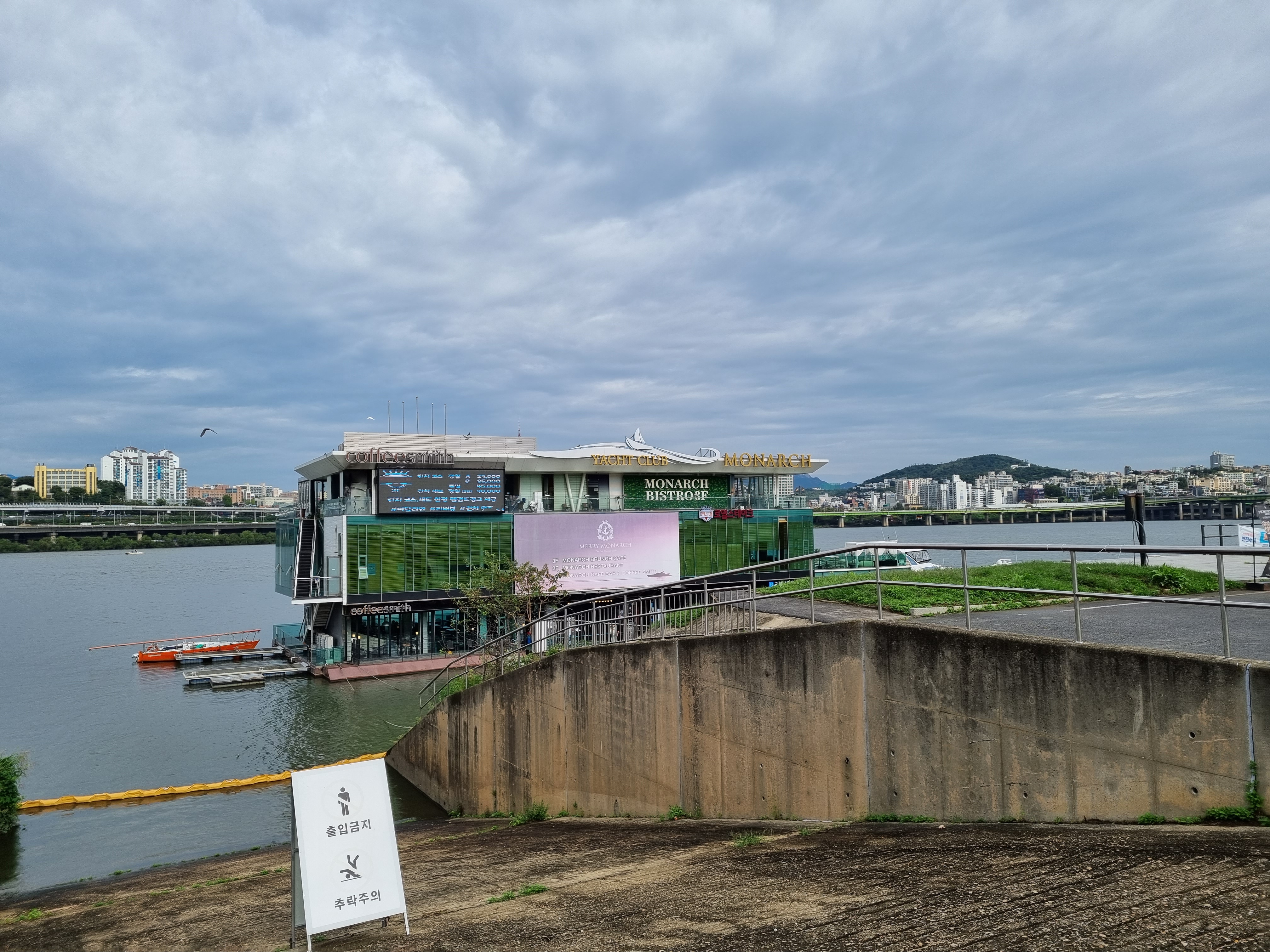 나는 한강 위에 떠 있는 것으로 생각했는데, 흔들림도 전혀 없고 안정적인 걸 보면 그냥 건물인가라는 생각도 들고, 아니면 고정이 잘 되어 있나? 비 많이 와서 한강 수위 높아지면 어떻게 되는 거지?
