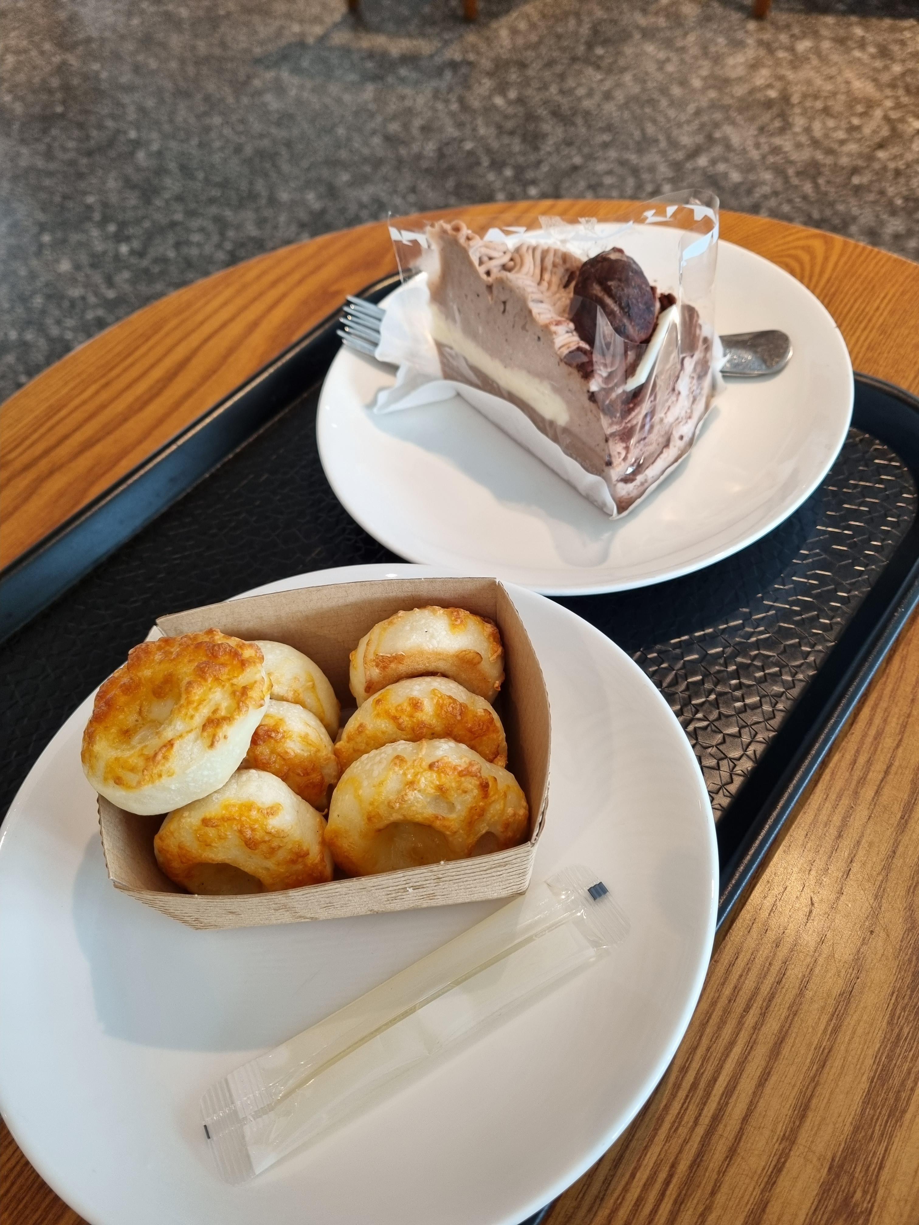 어쨌든 왔으니까 뭐라도 먹어야지. 치즈꿀볼과 몽블랑치즈케이크▼