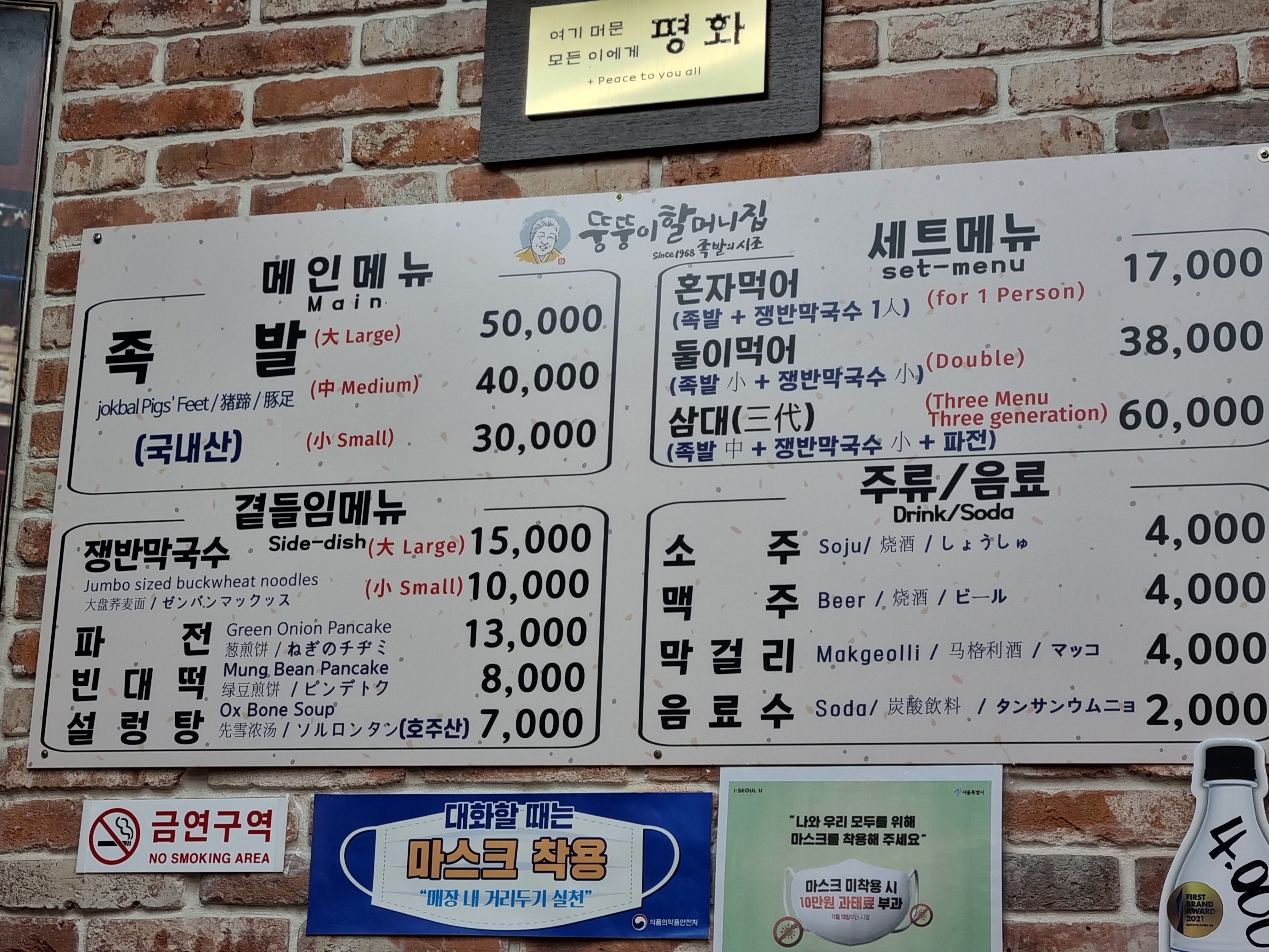 메뉴판(많이 틀린 일본어 번역이 눈에 거슬렸다). 흠, 보쌈은 안 파는 군.▼