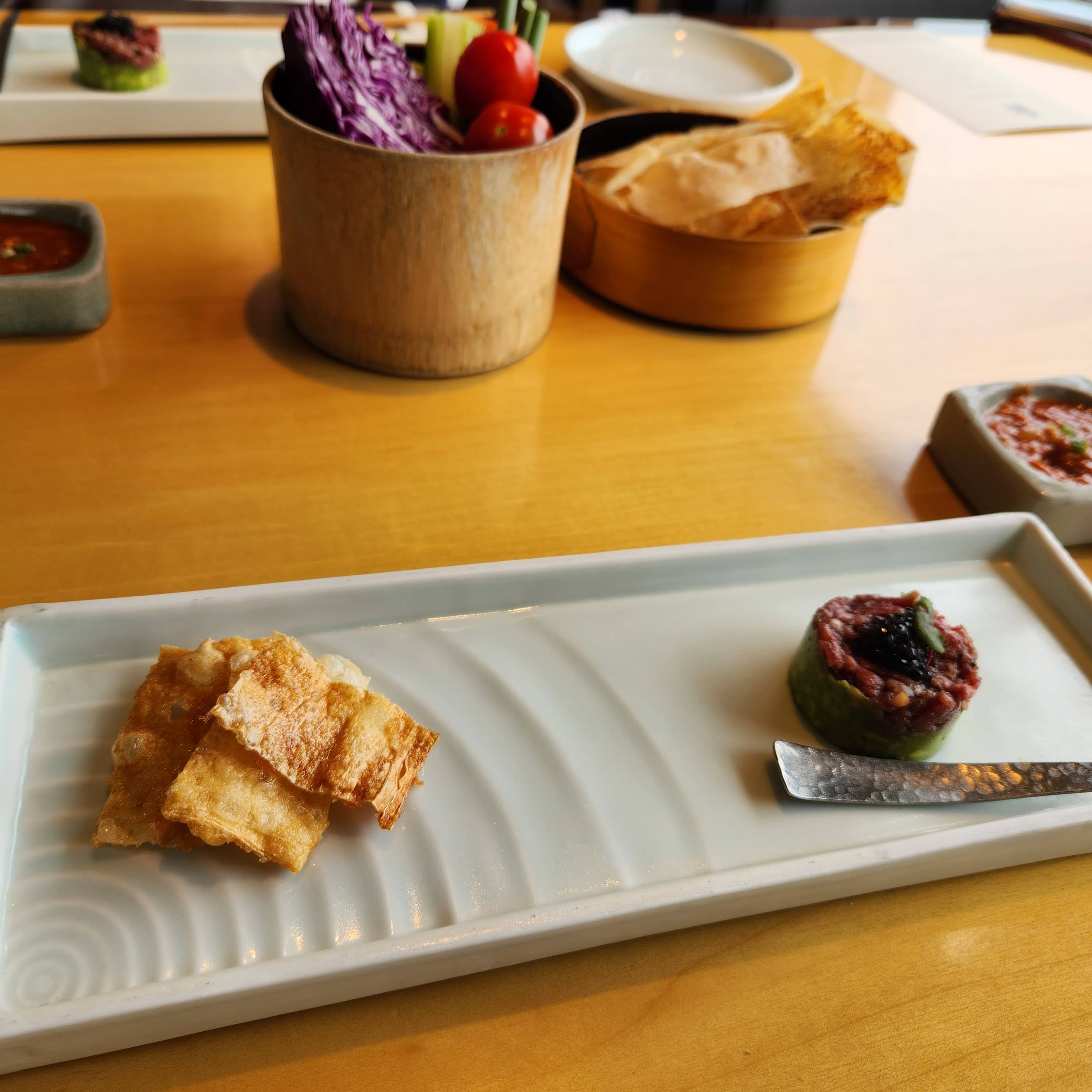 전채는 나쁘지 않았다. 유바튀김과 아보카도, 와사비, 소고기 타다키. 튀김에 적당히 덜어서 발라먹어주면 입맛을 돋워준다.▼