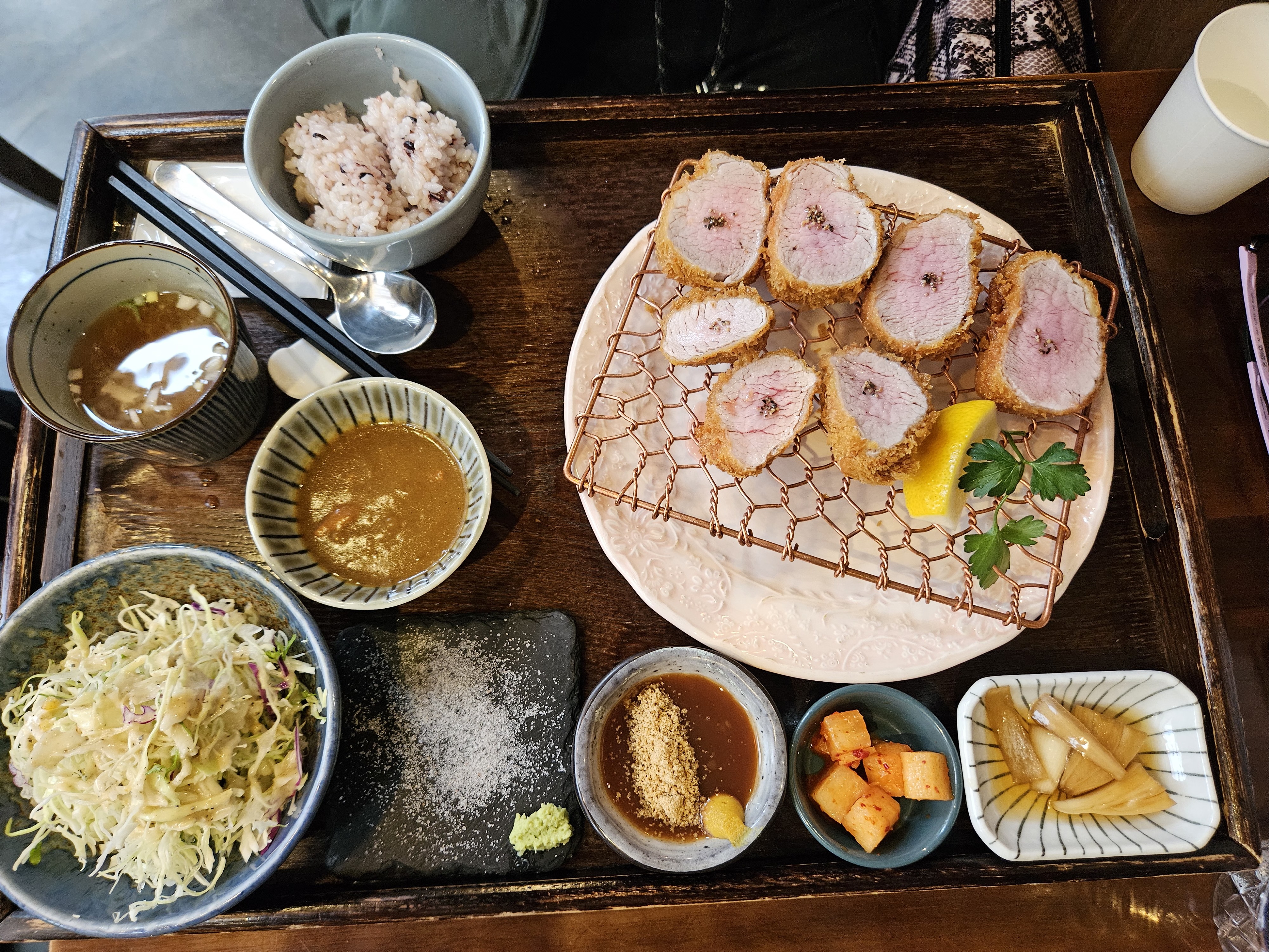 등심보다 안심이 좀 더 부드러워서 낫다. 둘 다 맛은 평범하다. 아니 약간 못하다. 돼지고기 풍미가 없음.