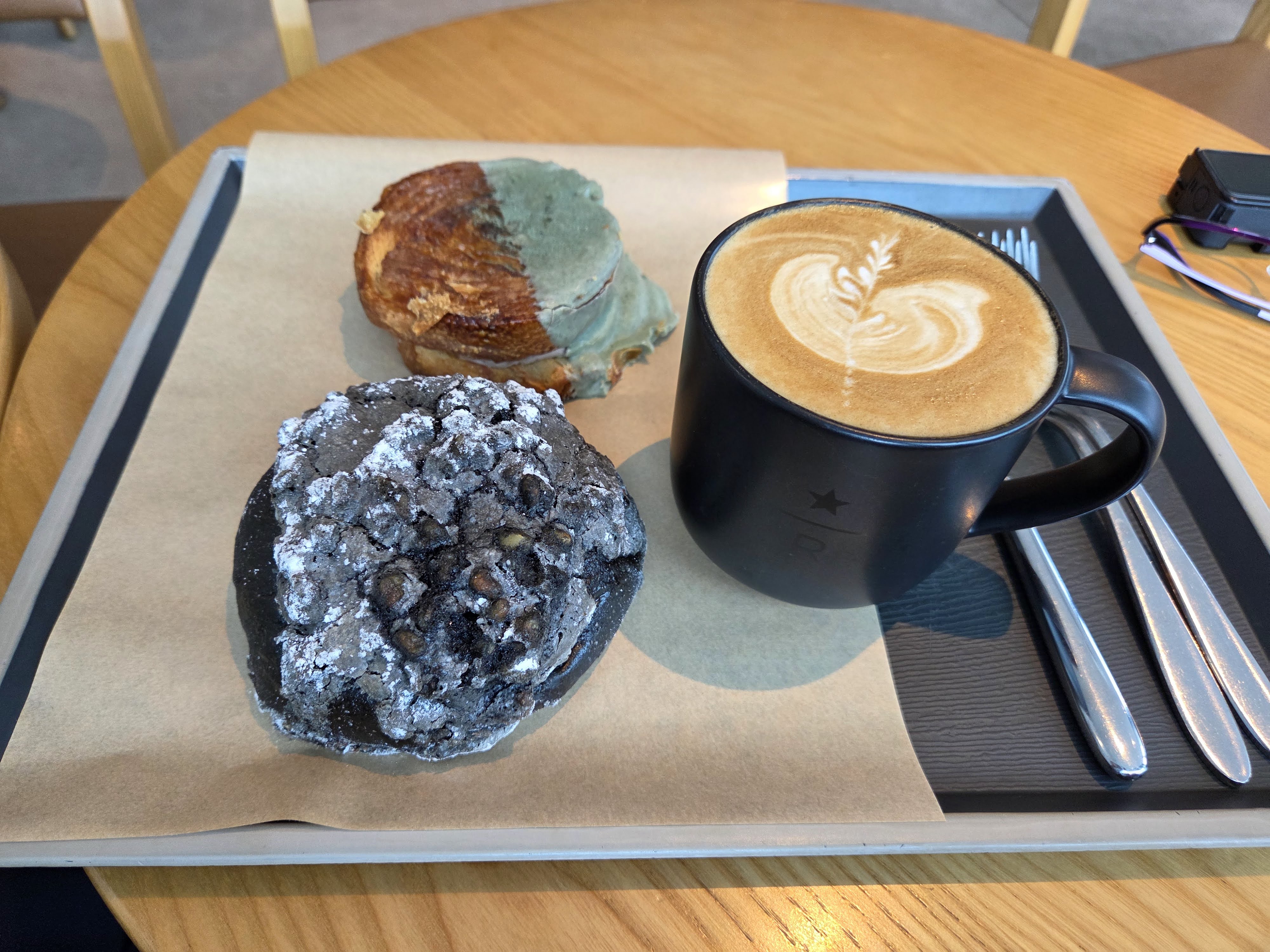 (오른쪽) 리저브 카페라떼 6500원 - 맛은 보통 라떼와 다른 걸 잘 모르겠고, 값이 비싼 건 라떼아트 값인가?
