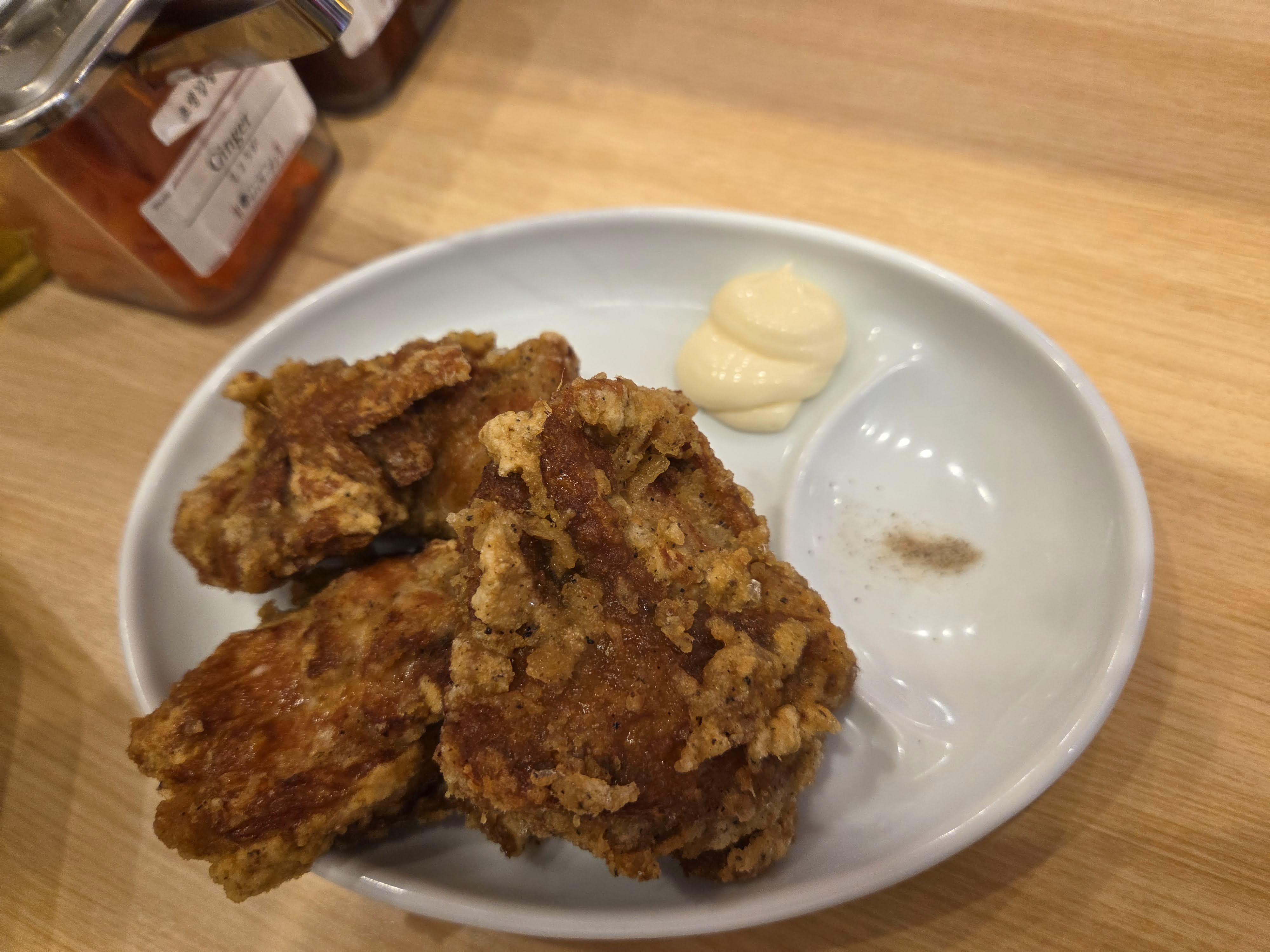 가라아게 3조각. 5천원. 갓 튀겨 나온 건 맛이 없을 수가 없지.▼