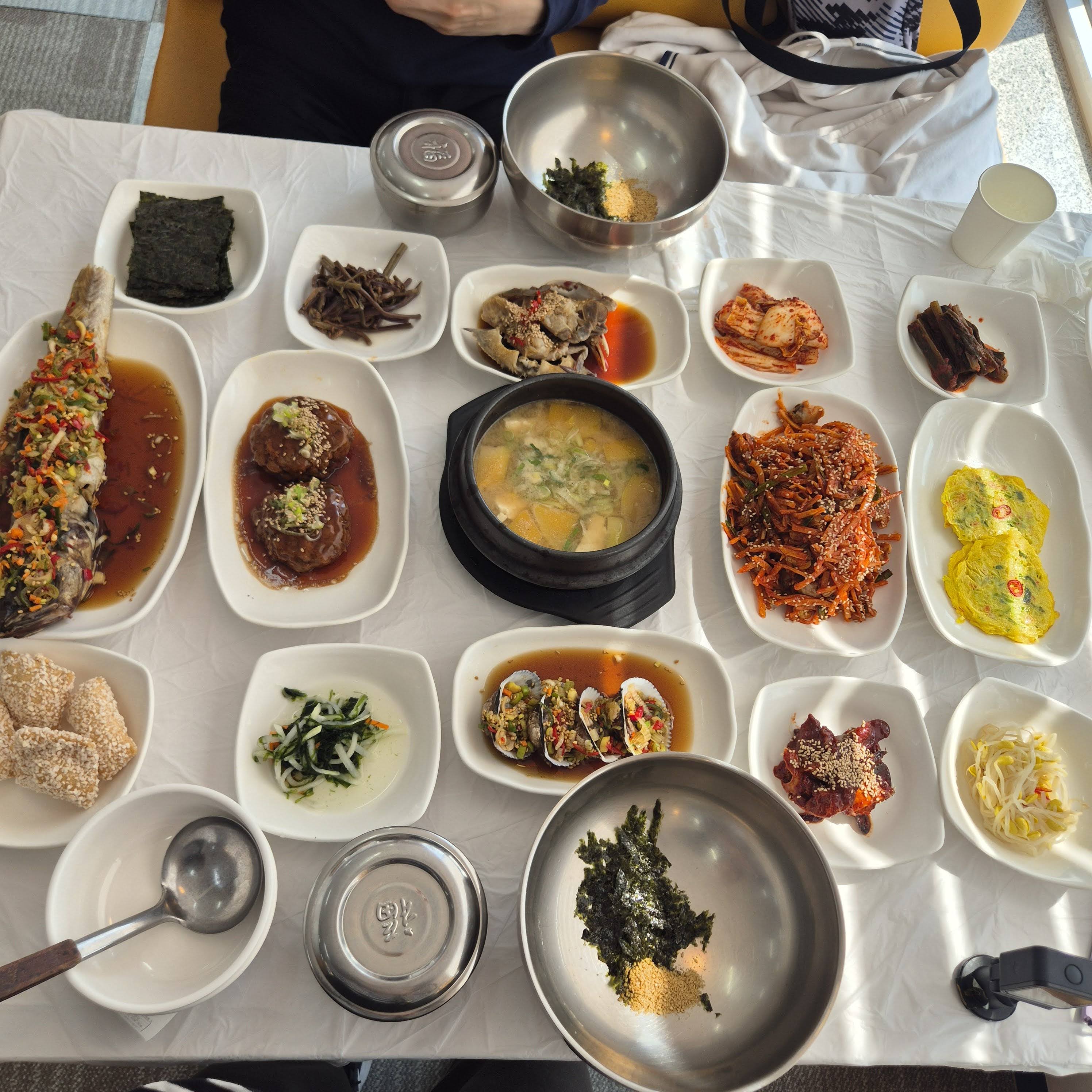 꼬막무침, 양념게장, 간장게장, 황태(?), 떡갈비 등이 나오는데 가장 맛있었던 건 사진상 가운데 아래쪽에 있는 조개(?)이고, 가장 별로는 떡갈비다. 떡갈비는 고기가 아니라 뭐 이상한 걸로 만든 거 같아. 나머지는 뭐 평범하다.